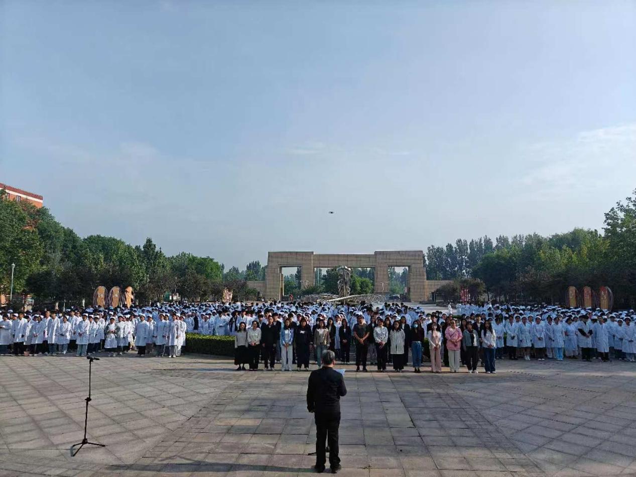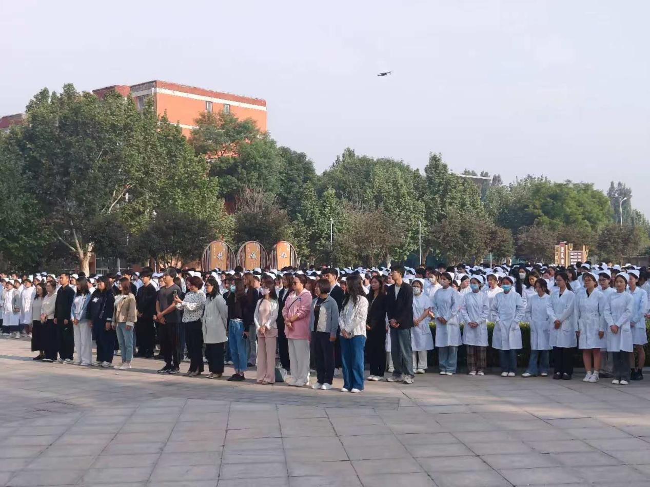 为贯彻落实教育部、省教育厅九部门“职教活动周”文件精神,按照学院“职教活动周”实施方案要求,进一步加强爱国主义教育, 2025年5月12日清晨护理系举行升国旗仪式暨国旗下的思政课活动。护理系主任柴润国,护理系副主任满帅,护理系学工科副科长张萍,护理系全体辅导员,以及护理系2023级、2024级全体学生参与本次活动。