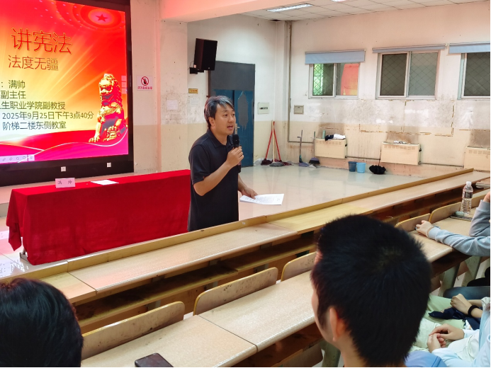 此外,满副主任还针对校园生活中常见的法律问题,引入网络热事,在网络安全、隐私保护、公共安全等方面进行了普法宣传,引导学生知法、懂法、守法、用法。讲座内容丰富、案例生动,既有理论深度,又贴近实际,赢得了现场学生的热烈掌声。