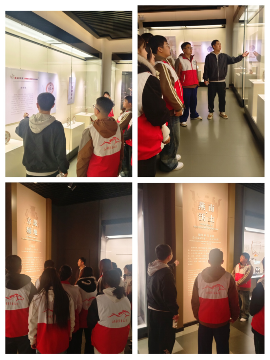 在杨天鹤老师的引导下,同学们依次参观了“古代廊坊”、“近代廊坊”、“红色记忆”等核心展厅。在“古代廊坊”展厅,学员们驻足于精美的陶器、石器和青铜器前,透过一件件承载着岁月印记的文物,仿佛触摸到了廊坊先民们的生活智慧与创造力,深刻感受到了中华文明的源远流长与博大精深。一幅幅老照片、一份份珍贵文献,生动再现了廊坊在近代社会变迁中的发展历程,让同学们对廊坊的历史有了更为立体的认识。大家认真聆听杨老师的讲解,不时低声交流感悟,深刻体会到今天幸福生活的来之不易,进一步坚定了理想信念和听党话、跟党走的政治自觉。