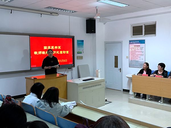 按照学院2021年度校级教师教学能力比赛的部署和安排,为进一步提高我系任课教师教学基本技能,促进教师树立高职教育理念,磨练教学内功,提升教学质量,结合学院教学改革和发展需要,临床医学系于2021年5月6日在4号实验¥101室成功举办了我系教师教学能力比赛初赛。比赛由教学科科长石凤敏同志主持。比赛评委由系主任李玉明、综合办主任许连颖、外科教研室主任解国成、内科教研室主任史志春、预防教研室主任邢晓媛担任。