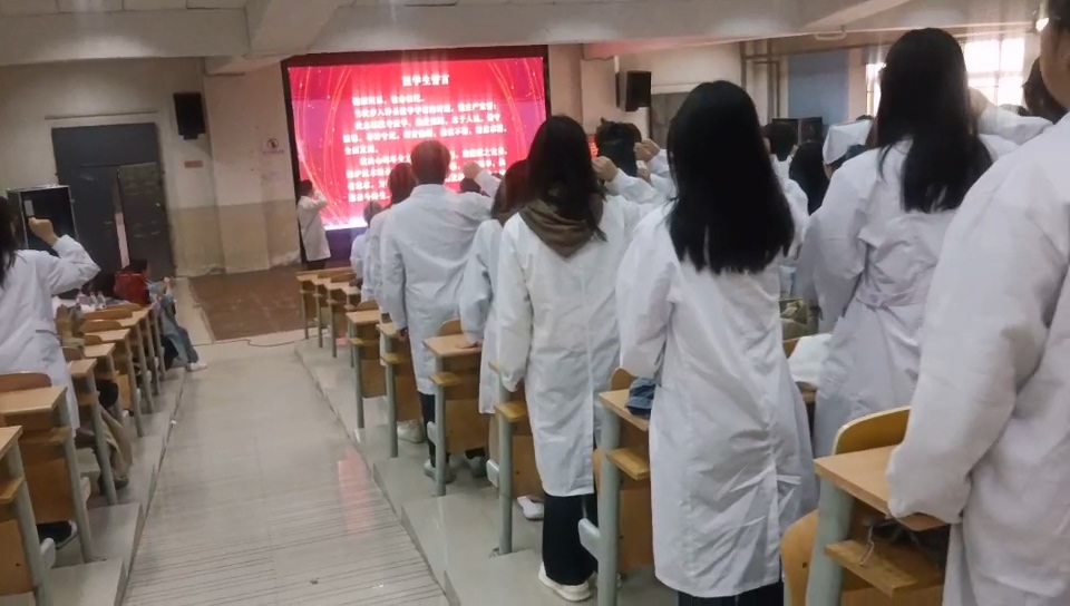 活动的最后,现场全体医学生重温医学生誓言,在“五四”青年节来临之际,激励自己在今后的学习和工作中不仅要具备扎实的专业知识,更要拥有高尚的医德和无私奉献的精神。医学生誓言,就是我们对这份使命的庄重承诺,是我们对自己未来的坚定信念,是对在场老前辈的最大敬仰。