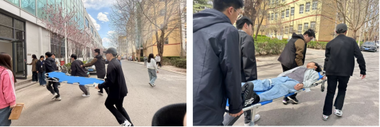 抵达预定地点后,校医院赵老师现场演示伤员救助、止血包扎、骨折固定等急救技能,重点讲解“黄金救援时间”的科学利用,师生代表在指导下进行了实操练习。