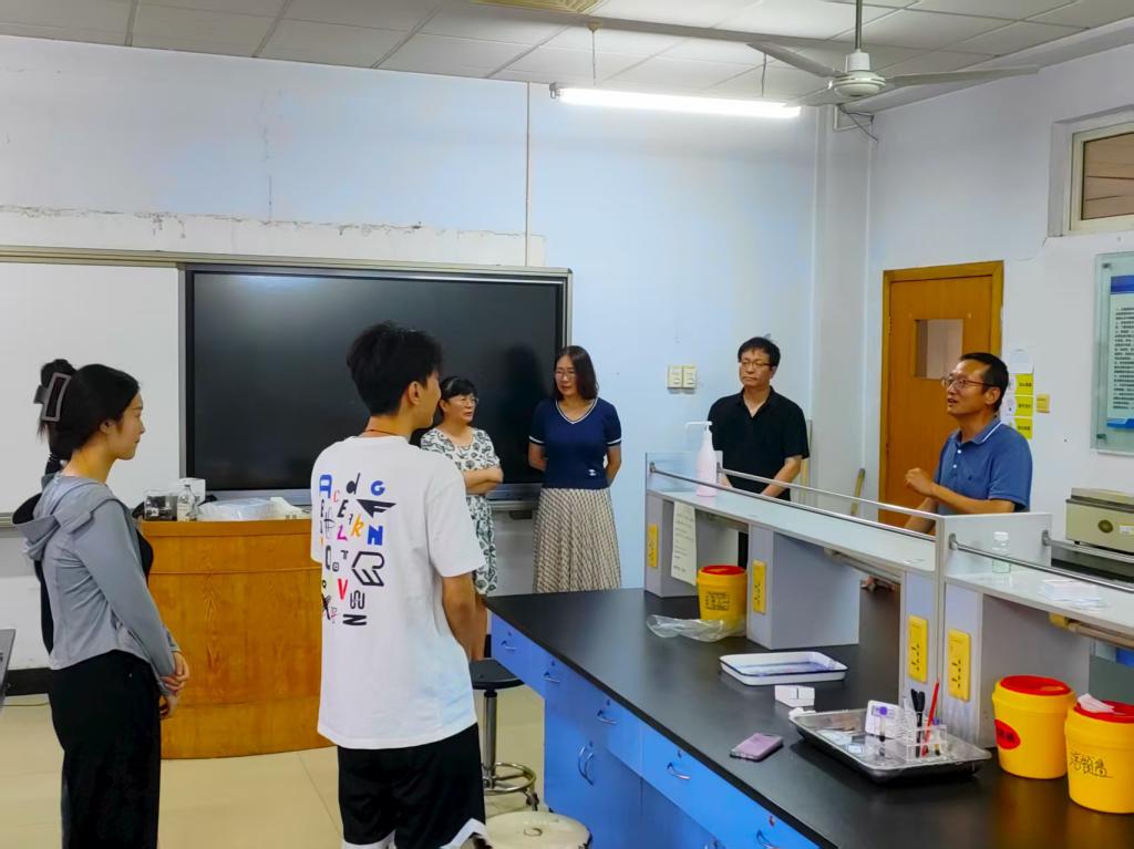 8月4日上午,医技系领导和科室负责人到医学检验技术实训中心看望医技系检验专业备赛世界职业院校技能大赛师生。