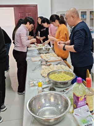 “老师,我们家包的饺子是方形的。”“老师,我们家包的是红油猪肉馅的。”“张老师,你看我会包花边饺子。”12月29日下午,医技系师生包饺子活动现场,来自全国各地的同学们你一言、我一语,边包饺子边和老师们聊着家乡的风俗习惯,活动现场欢声笑语,其乐融融。