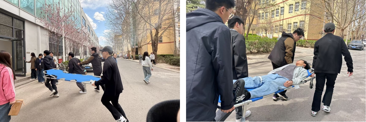 抵达预定地点后,校医院赵老师现场演示伤员救助、止血包扎、骨折固定等急救技能,重点讲解“黄金救援时间”的科学利用,师生代表在指导下进行了实操练习。