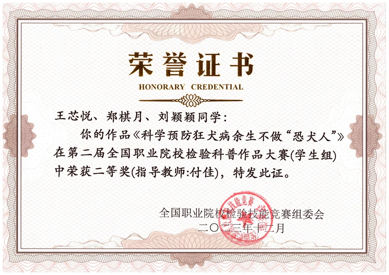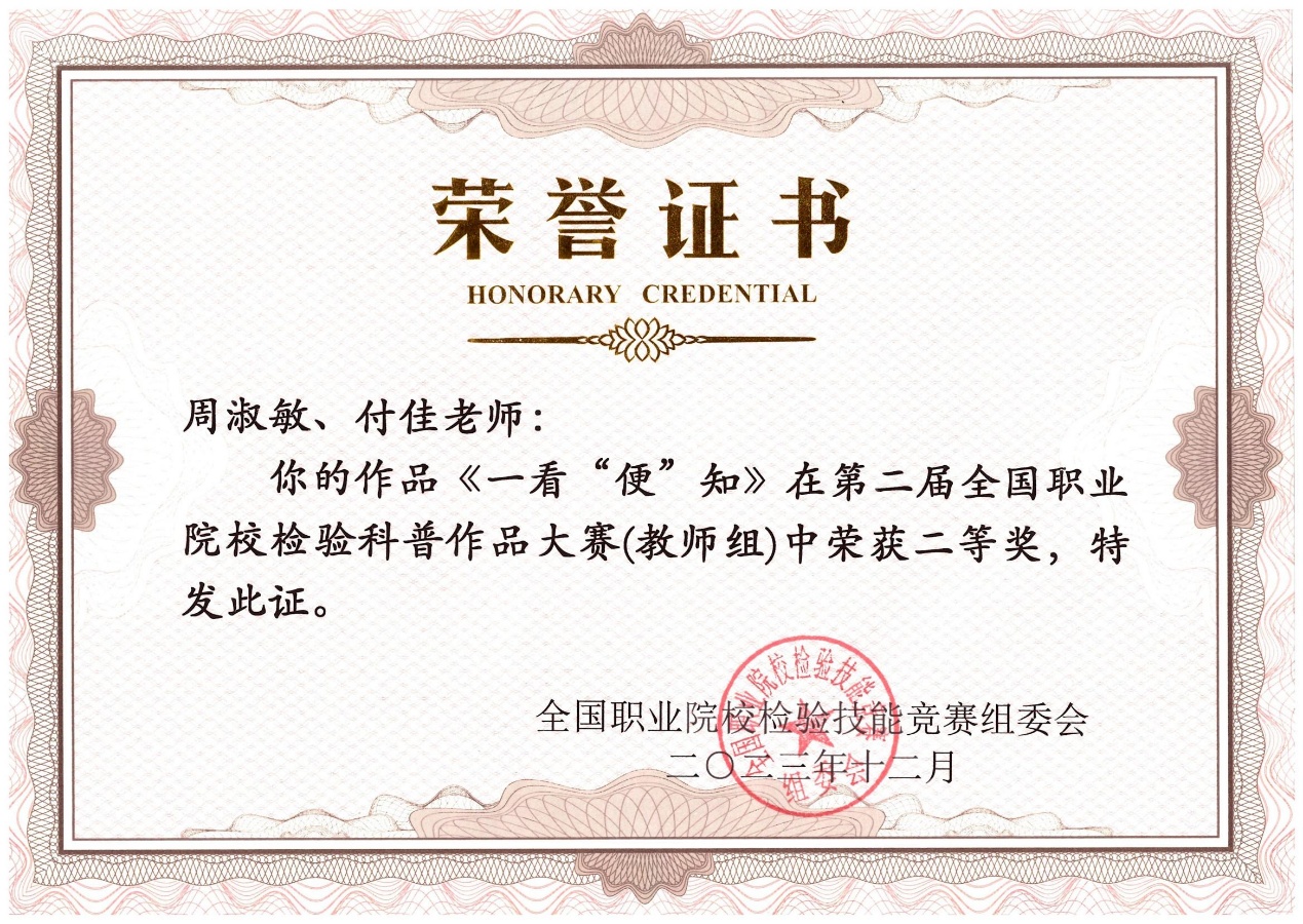 付佳老师指导学生获第二届全国职业院校科普作品大赛(学生组)二等奖