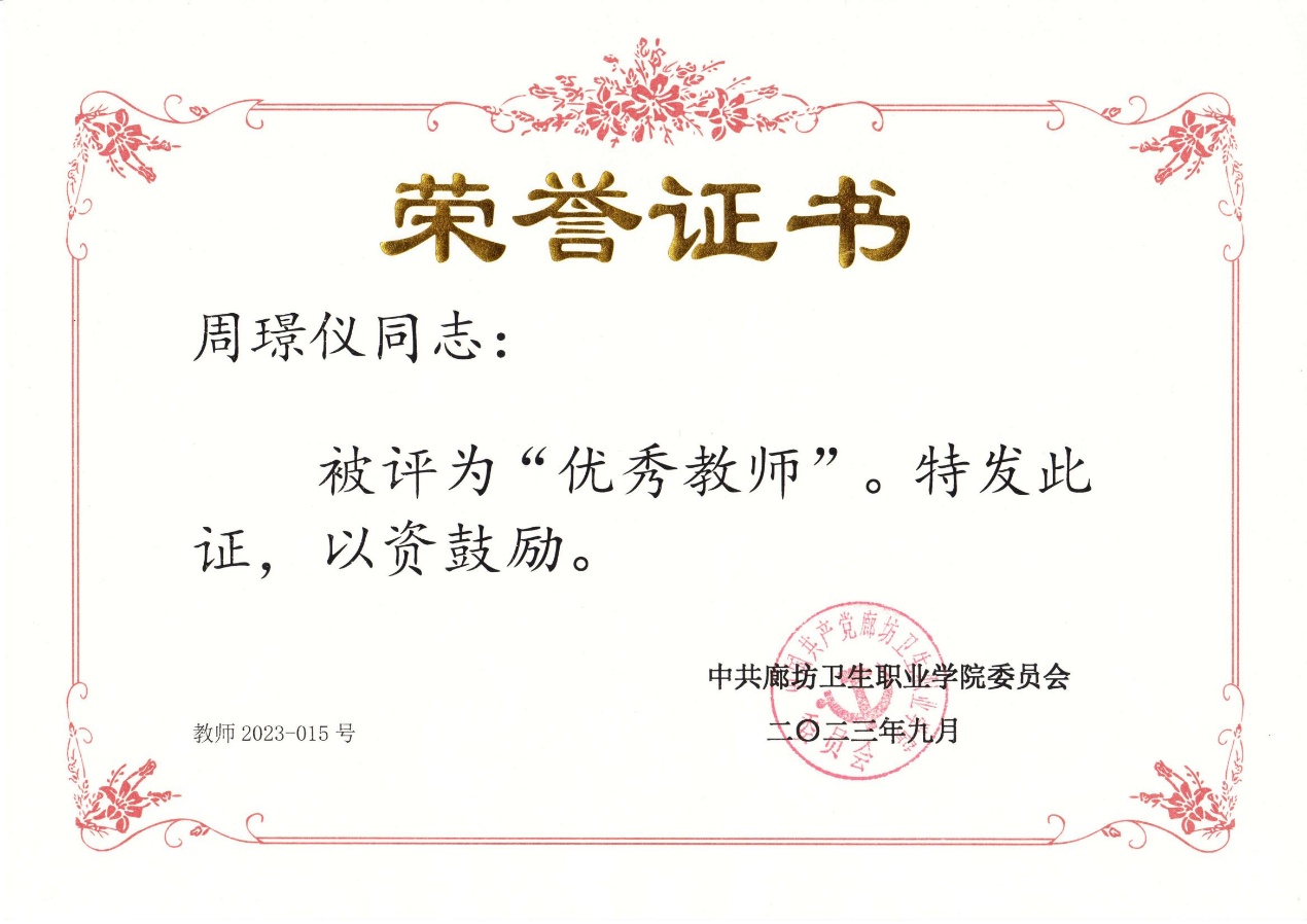 周璟仪老师指导学生在2024年河北省职业院校技能大赛中获一等奖