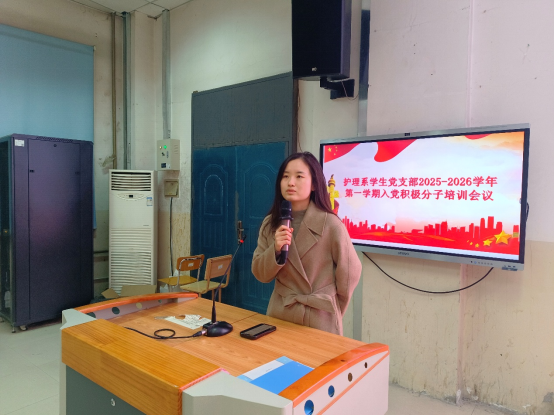 为加强入党积极分子的思想政治教育,引导青年学子坚定理想信念、强化责任担当,护理系学生党支部于2025年10月30日开展了2025-2026学年第一学期入党积极分子培训会议。