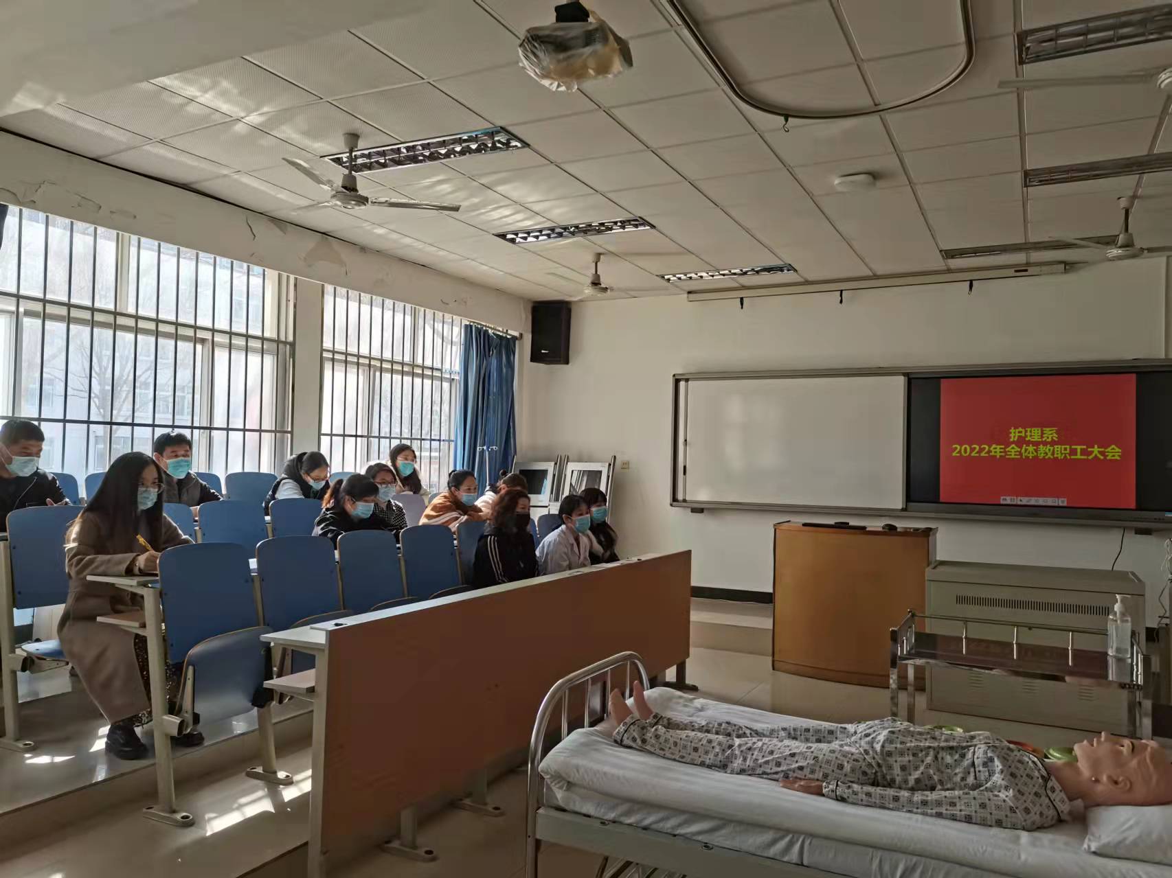 3月3日下午2点,护理系在护理实验¥示教室一召开了新学期教职工大会,此次会议对本学期护理系工作进行了部署。