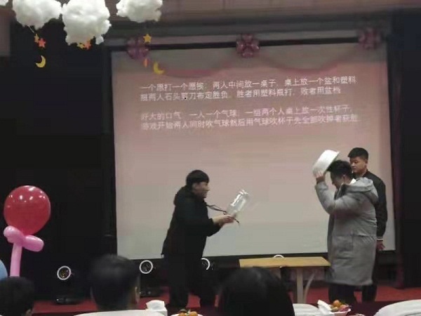 晚会中还穿插着妙趣横生的游戏环节,包括好大的口气、吸管运输以及一个愿打一个愿挨,让大家在观看节目之余,主动融入到愉快的气氛中。
