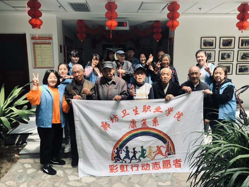 为了弘扬孝亲敬老之风,4月21日,康复系彩虹行动志愿者在队长陈佳奇和18-2班班长翟照宇的带领下前往开发区敬老院开展志愿行动。
