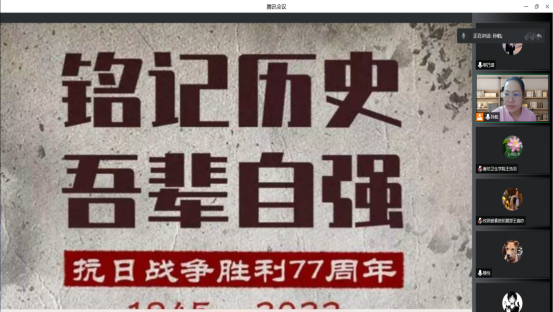 今年是中国人民抗日战争暨世界反法西斯战争胜利77周年。为了缅怀抗战先烈的光辉业绩,弘扬爱国主义精神和民族精神,激发学生奋发向上、报效祖国的热情,我系组织开展了“勿忘国耻、圆梦中华”主题班会。