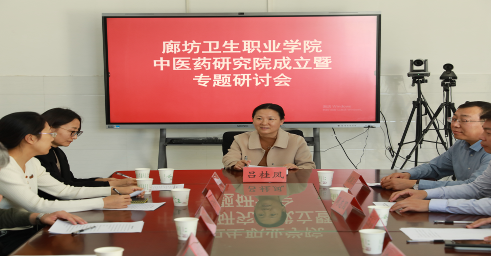 11月17日,我院中医药研究院成立暨专题研讨会在现教综合楼301会议室召开,旨在进一步提高学院中医药科研水平,促进中医药产业技术成果转化,助推中医传承大师工作室建设。学院党委书记雷剑、院长刘更新,河北中石油中心医院副院长刘创建,廊坊师范学院生命科学院副院长周志国出席并讲话。