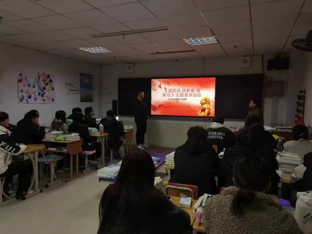 为深入学习贯彻习近平总书记二〇二四年新年贺词精神,按照市委宣传部《关于开展“读贺词、庆新春、建新功”主题宣讲服务活动的通知》要求,引导全校师生牢记嘱托、感恩奋进,近日,思政部按照学院党委的安排部署,在学院五系配合下,开展了“读贺词、迎新春、建新功”主题宣讲服务活动。活动分为两个阶段,第一阶段,各系以班级为单位进行新年贺词的学习;第二阶段,知行社学生宣讲员和教师宣讲员进入班级进行宣讲。全院4900余名学生、12名学生宣讲员、6名教师宣讲员踊跃参与到活动中,收到良好效果。