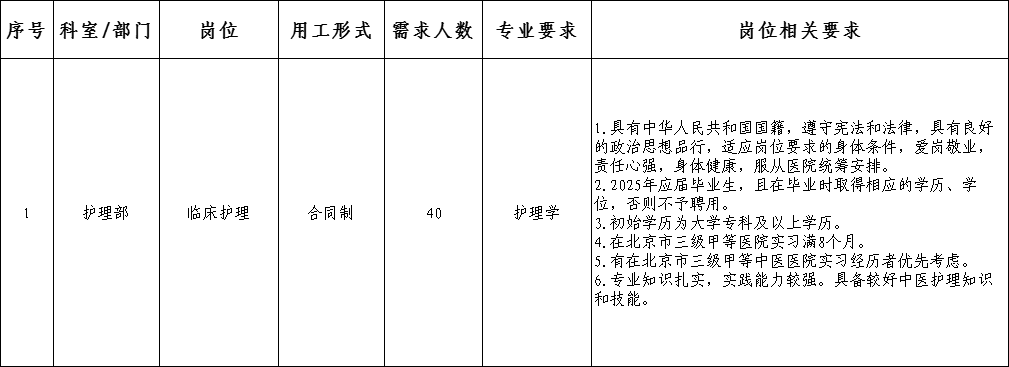 根据工作需要,2025年中国中医科学院广安门医院公开招聘合同制工作人员40名。现将有关事项公告如下:
