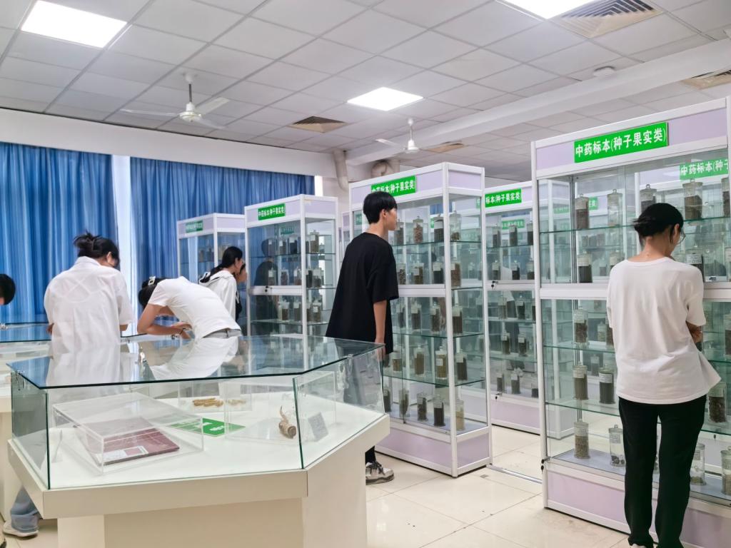 当日下午13:00,中药标本馆正式开放,近300名师生群众陆续进馆参观。在专业老师的引导下,学生依次参观了腊叶标本、生药标本和浸制标本。