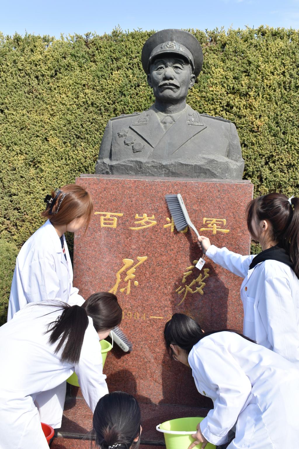 活动中,大家怀着崇敬而沉重的心情庄严肃立,全体祭扫人员向革命先烈默哀致敬。春风拂过广场,扬起白衣一角,载起对先辈的厚重思念,越过时间的洪流。默哀结束,同学们手持扫帚、抹布,怀着崇敬的心情清洁纪念碑周边环境,对烈士纪念碑前的空地以及阶梯进行打扫。