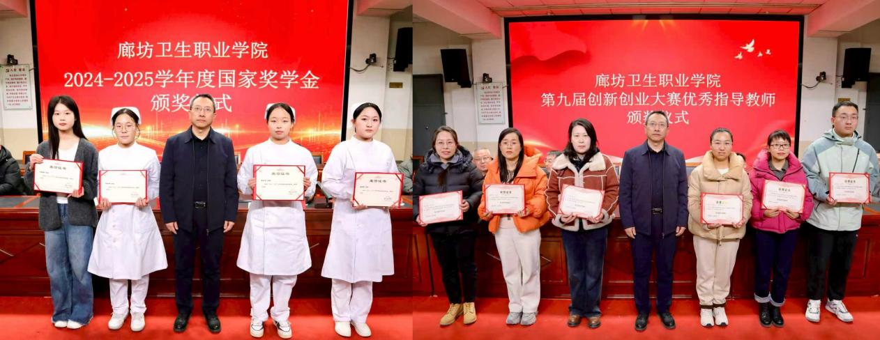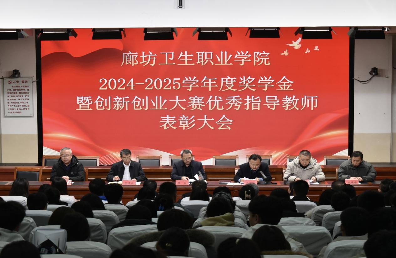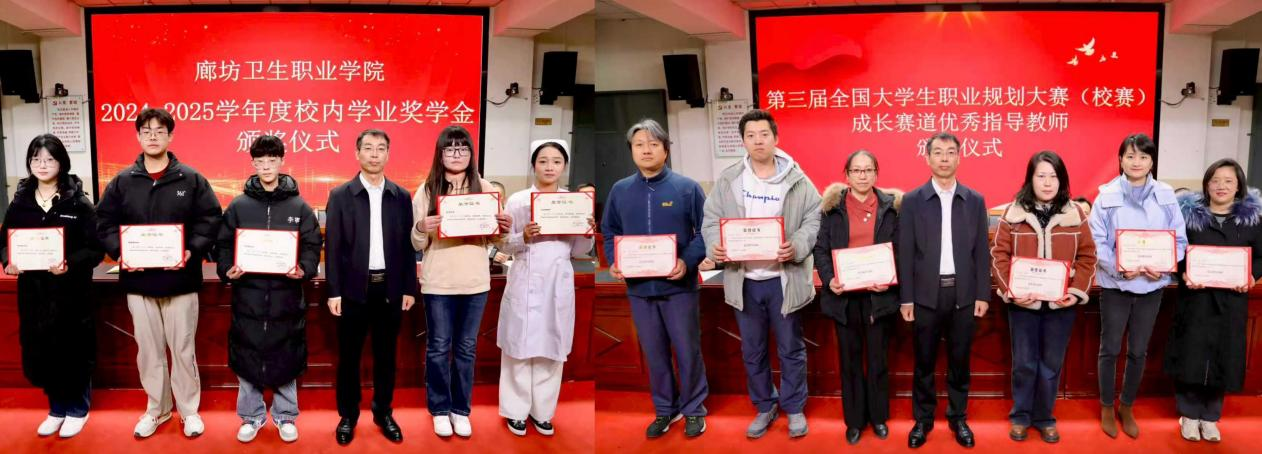 马书记宣读了《关于表彰2024-2025学年度获得国家奖学金等奖项学生的决定》、《关于表彰第九届创新创业大赛和第三届全国大学生职业规划大赛(校赛)获奖项目及团队的决定》。纪院长、马书记、魏院长分别为获奖学生代表及获奖教师颁奖。