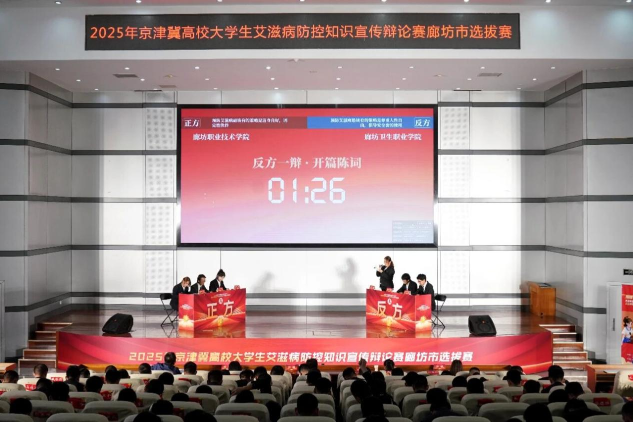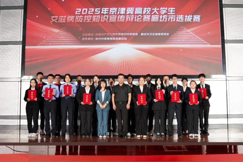 为加强京津冀高校大学生艾滋病防控知识宣传工作,营造良好校园宣传氛围,9月27日,廊坊市防艾艾滋病工作委员会办公室举办了廊坊市艾滋病防控知识宣传挑战辩论选拔赛。护理系于丰泽、云绍涵、罗稍锴三名同学经过陈词、攻辩环节、自由辩论及总结陈词四个阶段的激烈角逐,最终以优异的成绩荣获本次大赛“优秀组织奖”。