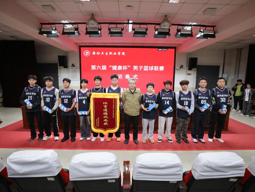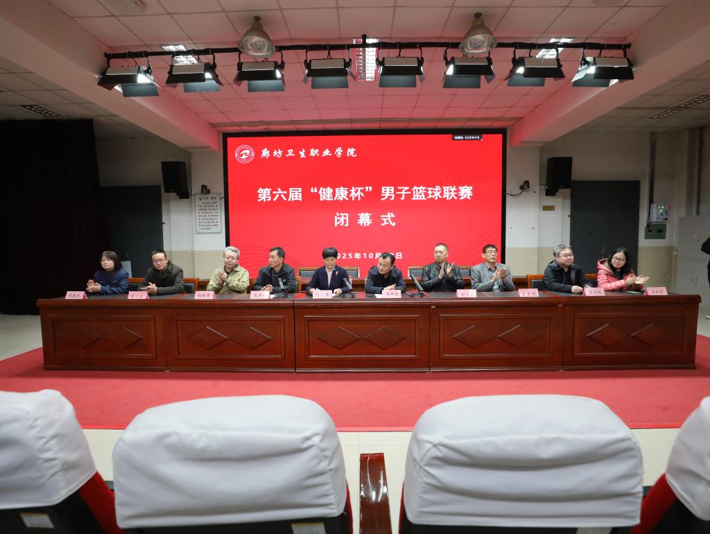 10月30日,廊坊卫生职业学院第六届“健康杯”男子篮球比赛闭幕式在学术报告厅隆重举行。党委副书记马世旭、副院长赵玉、学生工作处处长庞建仓、公共基础部负责人、五系书记、主任、学工科长、全体辅导员、运动员、裁判员参加闭幕式。本次开幕式由学生工作处处长庞建仓主持。