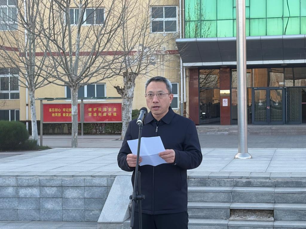 3月9日清晨,学院组织开展2026年春季学期开学第一课暨国旗下的思政课。活动由党委委员、副院长纪连永主持,党委委员、组织人事处处长、药学系党总支书记赵立华、党委委员、药学系主任马改霞出席活动,各系主任、副主任、全体学工科长、全体辅导员及2025级全体学生参加活动。