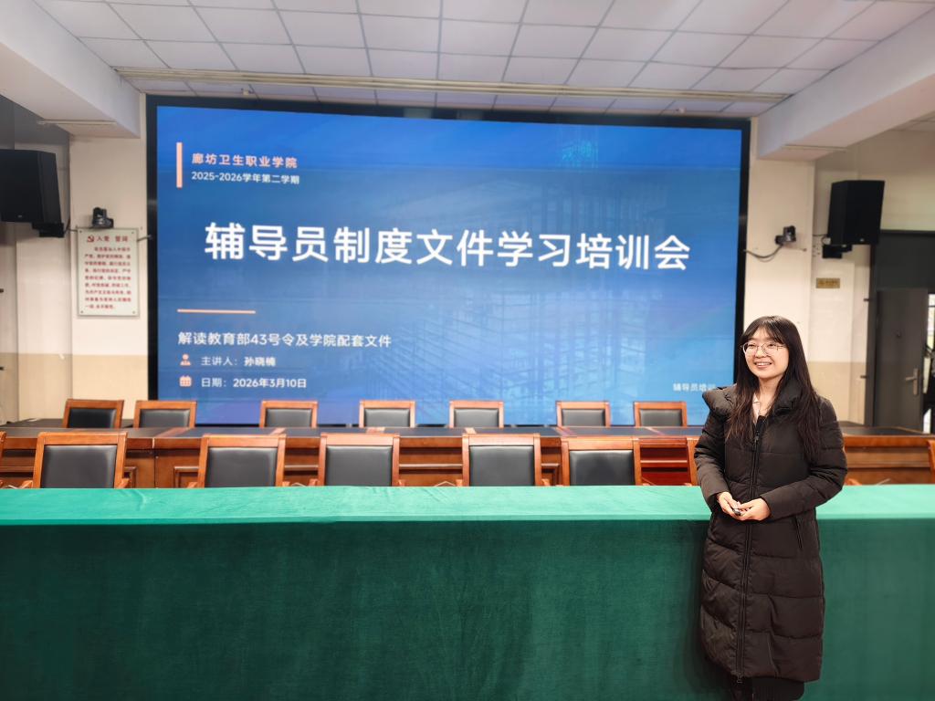 学生工作办公室副主任孙晓楠带领全体辅导员一起学习了《普通高等学校辅导员队伍建设规定》(教育部43号令)、《廊坊卫生职业学院辅导员岗位管理办法》、《廊坊卫生职业学院辅导员考核管理办法》。培训强调,辅导员是开展大学生思想政治教育的骨干力量,必须准确把握自身角色定位,切实履行好九大工作职责,坚守育人初心,锤炼过硬本领,做好学生引路人。